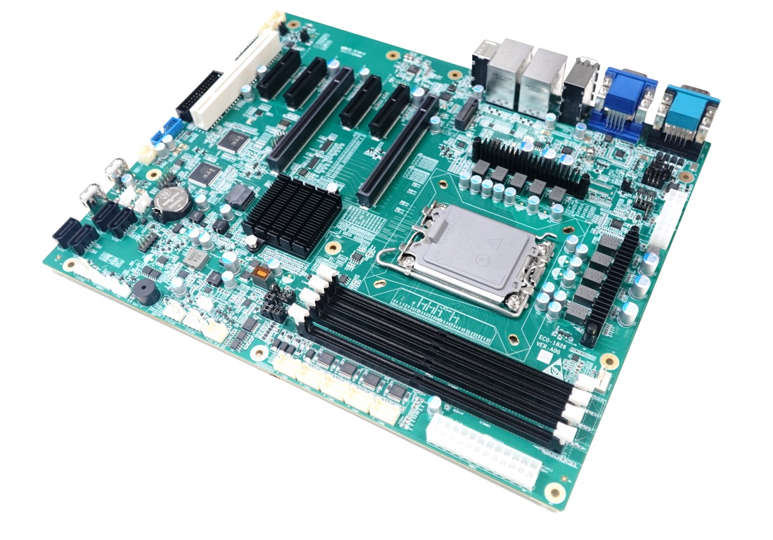EC0-1826 Промышленная материнская плата формата ATX , чипсет Intel Q670E, процессор 12/13rd Generation (Alder Lake-S) Intel Core i9/ i7/ i5/ i3 S1700, 4x DDR4 max 128G, VGA, HDMI, DP, 1xGLAN + 1x2.5GLan, 4x SATA (RAID 0,1,5,10), 4xRS232 + 2xRS232/422/485, 8x USB2.0, 6xUSB3.2, 1x PCI, 4x PCIe-x4, 2x PCIe-x16, HD Audio, 1xPS/2 внутренний, ATX