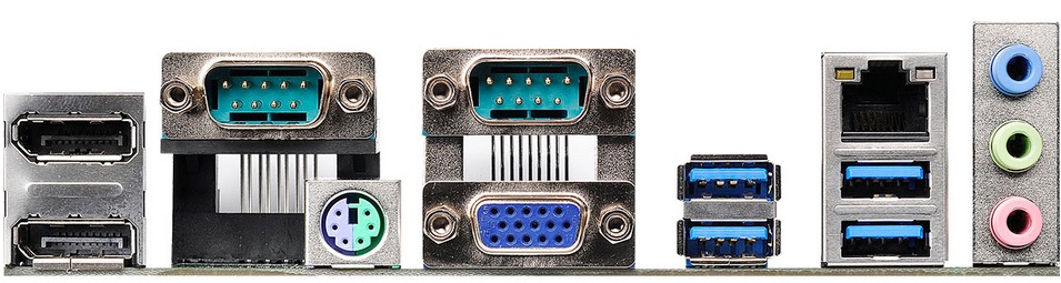 | Разъемы на задней панели | VGA, 2xDP, RJ45(GLAN), 2xDB9(COM), 4xUSB, PS/2, Audio |