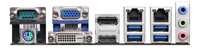 | Разъемы на задней панели | DB15 (VGA), DVI-D, HDMI, DP, 2xRJ45(GLAN), DB9(COM), 4xUSB, PS/2, Audio |