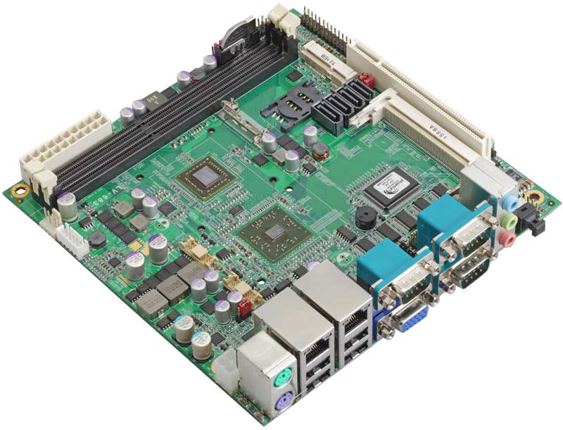 LV-683 Одноплатный компьютер формата Mini-ITX процессор AMD Dual-core T56N 1.65ГГц (установлен), VGA, LVDS, DVI, 2xGigabite LAN, 1xPCI, 1xMini-PCI, 1xMini-PCIE, Audio, 2xSATA, IDE, 10xUSB, 5xRS232+1xRS232/422/485, LPT, GPIO, сторожевой таймер, питание 5...24В DC или АТХ