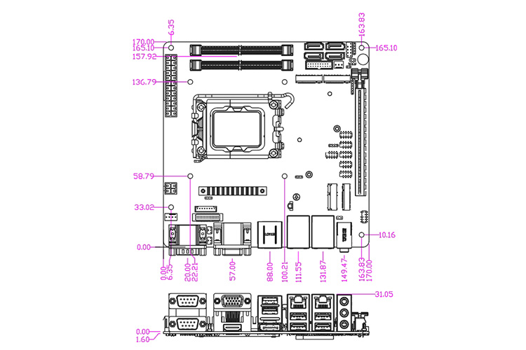 MI225R6800 Одноплатный компьютер формата Mini-ITX чипсет Intel R680E, процессор Intel 12/13/14th Generation (Alder Lake-S) S1700, 2x DDR5 SODIMM max 96G, 1 DP, 1 HDMI, 1 VGA, 2xGLAN, 11 USB, 6 COM, 1 PCIe x16, 4 M.2 (M2280, M2242, E2230, B3042), GPIO