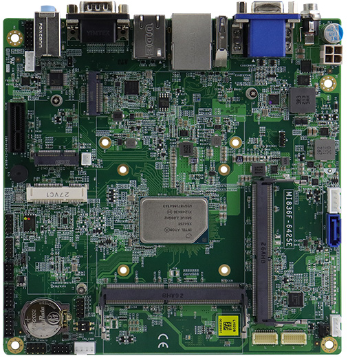 MI836F-6413E Одноплатный компьютер формата Mini-ITX процессор Intel Atom x6413E до 3,0 ГГц, DDR4 SO-DIMM максимум 32 Гб, HDMI, VGA, LVDS, 2xGLAN, 1хSATA3, 3xUSB3.1, 4xUSB2.0, 2xRS232, 2xRS232/422/485, 4xDIO, Audio, 1xPCI-Ex1, 1хMini PCI-E, 1xM.2 2280, 1xM.2 2230, питание +12...24 В DC, расширенный диапазон температур -40...+70°C