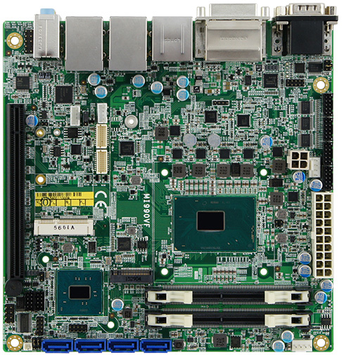 MI990EF-6100E Одноплатный компьютер формата Mini-ITX процессор Intel Core i3-6100E 2,7 ГГц, PCH Intel HM170, LGA1440, DDR4 SO-DIMM максимум 32 Гб, Display Port, HDMI, DVI-D, LVDS, 2xGLAN, 2хSATA3, mSATA, 6xUSB3.0, 4xUSB2.0, 5xRS232, 1xRS232/422/485, 4xDIO, Audio, 1xPCI-Ex16, 2хMini PCI-E, 1xM.2, ATX