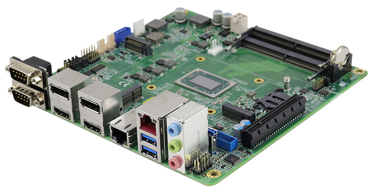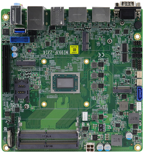 MI993F-2312 Одноплатный компьютер формата Mini-ITX процессор AMD Ryzen R2312 до 3,5 ГГц, BGA1440, DDR4 SO-DIMM максимум 32 Гб, 1хDP, 2хHDMI, 1x2,5GLAN, SATA3, 4xUSB3.1, 2xUSB2.0, 2xRS232, 2xRS232/422/485, 4xDIO, Audio, SIM, 1xPCI-Ex4, 1xM.2 2280, 1xM.2 2230, питание +12 В DC