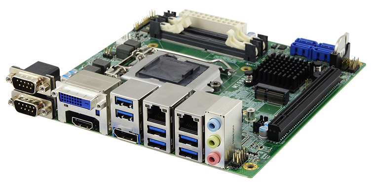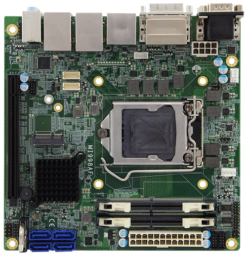 MI998AF Одноплатный компьютер формата Mini-ITX процессор Intel Xeon W / Core / Pentium / Celeron (до 4,7 ГГц), PCH Intel Q370, LGA1151, DDR4 SO-DIMM максимум 32 Гб, Display Port, HDMI, DVI-D, LVDS, 2xGLAN, 4хSATA3, 6xUSB3.0, 2xUSB2.0, 2xRS232/422/485 + 2xRS232, 4xDIO, Audio, 1xPCI-Ex16, 1xM.2 2280, 1xM.2 2230, ATX