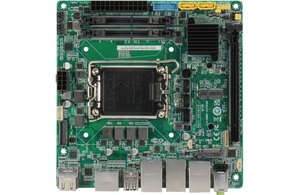 MIX-H610A1-A10-4L Одноплатный компьютер формата Mini-ITX процессор 12th/13th/14th Generation Intel Core, LGA1700 Socket, 2xDDR4 SODIMM до 64 Гб, 2хDP, 2хHDMI, LVDS/eDP, 4xGLAN, 2хSATA3, 4xUSB3.2, 4xUSB2.0, 1хRS-232,1хRS-232/422/485, 4xDIO, Audio, 1xPCI-Ex16, 1xM.2 2280, 1xM.2 2230, питание АТХ