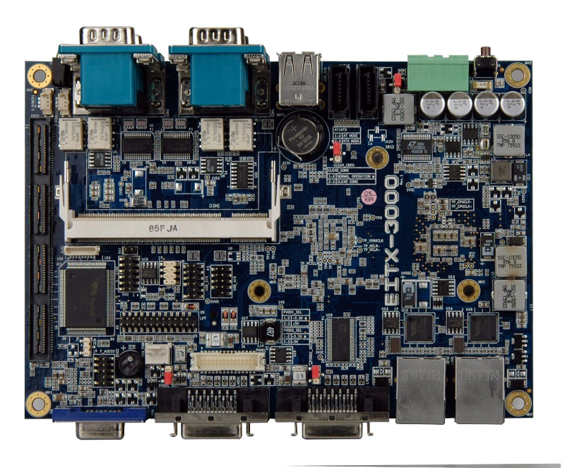 EITX-3000-1N13A1 Одноплатный везвентиляторный компьютер формата Em-ITX процессор VIA Nano 1,3 ГГц (встроенный), VGA, 2xLVDS 24-bit single-channel, 2xGLAN, Audio, 6xUSB, 2xRS232 + 2xRS232/422/485, 2xSATA (2.5"), CompactFlash Socket, слот расширения EMIO, питание 7...36B DC, рсширенный диапазон температур