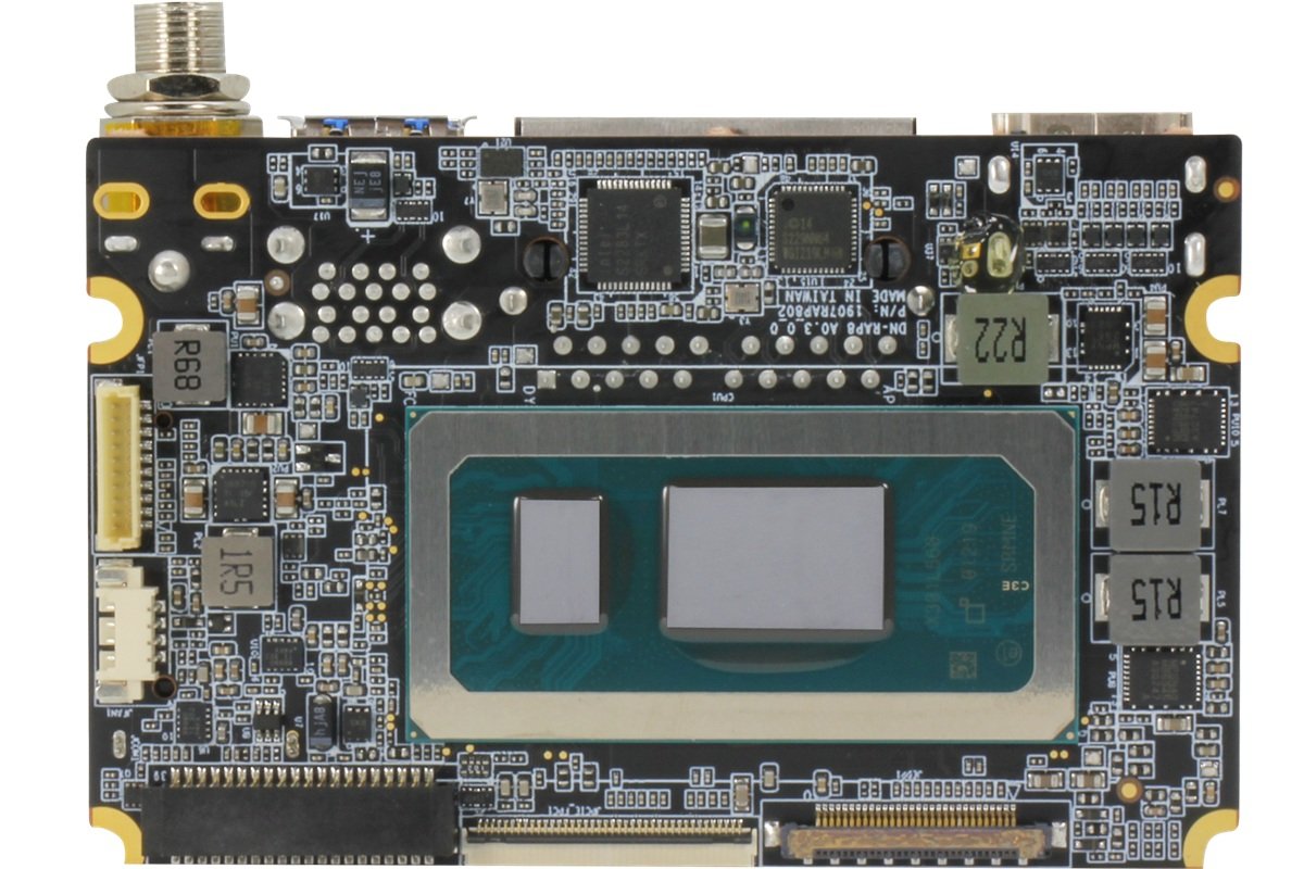 DENEXT-RAP8-A10-0003 Одноплатный компактный компьютер формата 86x55 мм, процессор Intel Core i3-1315UE 1.2 ГГц (запаян), LPDDR5x 16 Гб, eDP, HDMI, 1x2.5GLAN, 1xGLAN, 4xUSB2.0, 2xUSB3.2, 2xRS232/422/485, 1xSATA, DIО8, M.2 2280, FPC Connector, питание 12 В DC