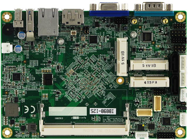 IB898-I15D1 Одноплатный компьютер формата 3,5'' процессор Intel Atom E3815 1.46 ГГц (установлен), DDR3L-1066 SO-DIMM, VGA, DP, LVDS, GLAN, Audio, 3xUSB2.0, 1xUSB3.0, 1xRS232+1xRS232/422/485, 2xSATA, mSATA, 3хMini PCI-E, питание 12 В DC, расширенный диапазон температур -40...85°C