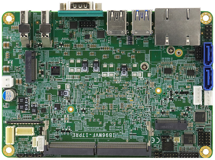 IB96WVF-I7PRE Одноплатный компьютер формата 3,5'' процессор Intel Core i7-1370PR, DDR5 SO-DIMM до 32 Гб, 2xDP, LVDS, 2x2,5GLAN, 2xSATA, 2xRS232/422/485, 3xUSB3.2, 3xUSB2.0, 4DIO, HD Audio, 1xM.2(2280), 1xM.2(2230), 1xM.2(3052), питание 12...24 В DC, расширенный диапазон температур -40...+75 °C