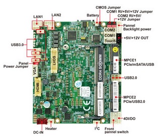 2I610HW-EI7 Одноплатный компьютер формата 2,5" процессор Intel Core i7-6600U 3.4GHz (запаян), VGA, HDMI, 2 CH 48 bits LVDS, 2xGLAN, 4xUSB2.0, 2xUSB3.0, 2xRS232/422/485, 4xDI/4xDO, SATA, mSATA, 2xMINI PCI-E, питание 9...36В DC, расширенный температурный диапазон -20...70