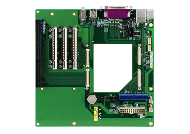 IP412 Carrier Board ETX, CRT, LVDS, LAN, 4xUSB2.0, 3xPCI, 1xISA, 1xRS232/422/485, 1xRS232, HD AUDIO, 4xDIO, LPT