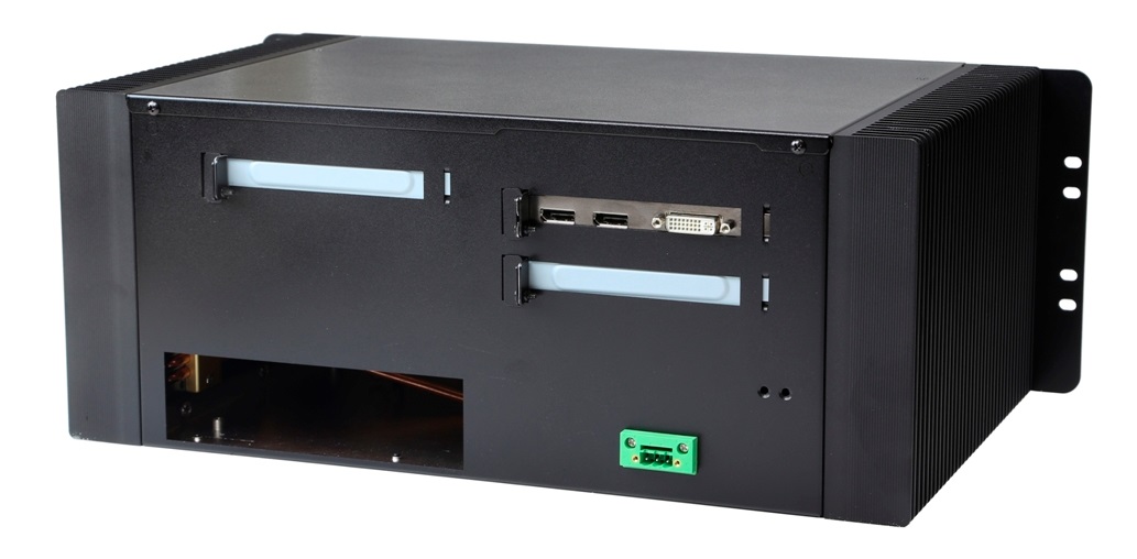 F4300/C4/90W19" безвентиляторный корпус 4U под плату Micro-ATX (TDP 75W), отсеки внешние: 1xODD Slim; отсеки внутренние: 1x2.5", 3x отсека для плат расширения PCI/PCI-E, DC-DC преобразователь C4 150Вт, внешний источник питания AC-DC 90Вт