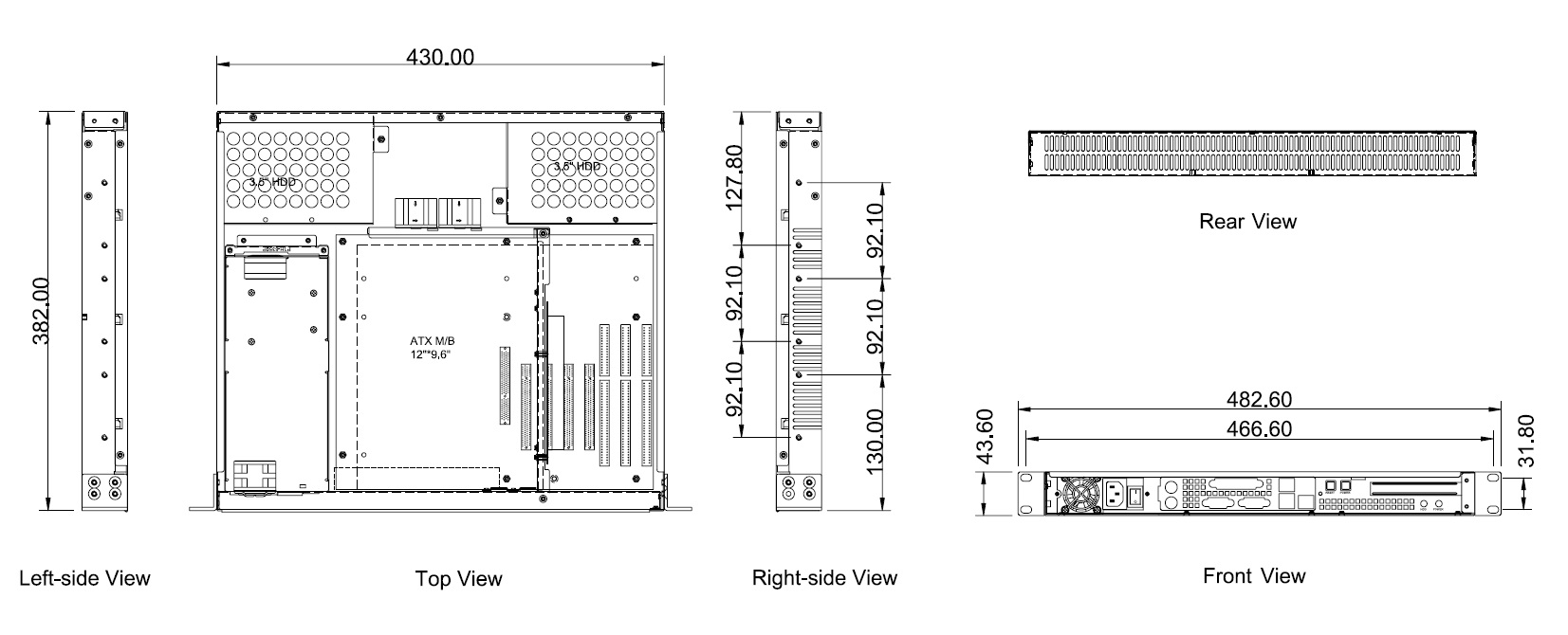GHI-10719" корпус 1U под плату АТХ (12" x 9.6"), отсеки внутренние: 2х3.5"