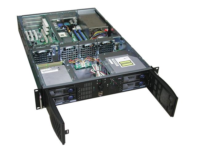 19" корпус 2U EATX отсеки открытые: 4x 3.5" Swappable Trays, 1x Slim FDD, 1x Slim CD-ROM