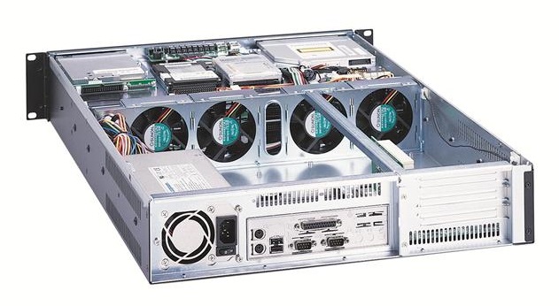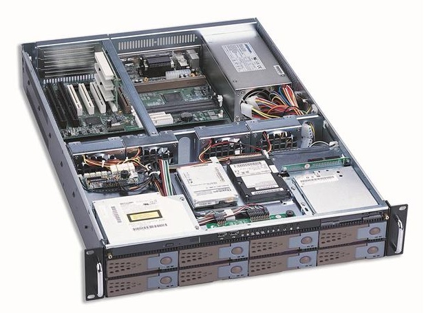 19" корпус 2U, отсеки открытые: 8 съёмныx 3.5" SAS; Отсек для Slim DVD; Отсек для Slim FDD; внутренние: 2x2,5", 7 низкопрофильных вертикальных слотов для плат расширения