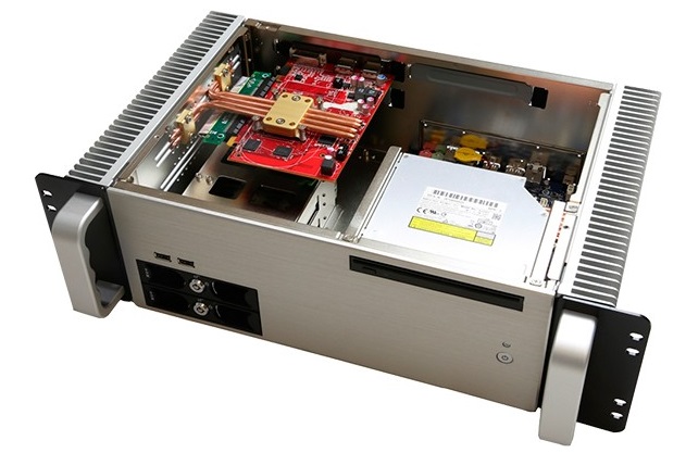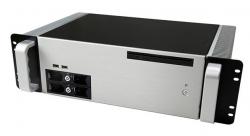 F3120/C4/120W19" безвентиляторный корпус 3U под плату Mini-ITX (TDP 65W), отсеки внутренние: 1x2.5", отсеки внешние: 2 корзины 3.5", 3x отсека для плат расширения PCI/PCI-E, DC-DC преобразователь C4 150Вт, внешний источник питания AC-DC 120Вт