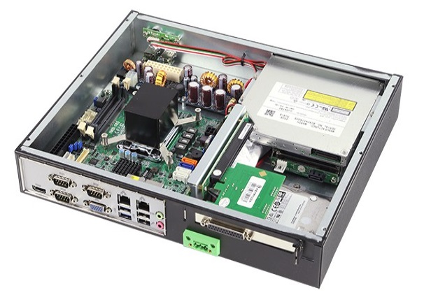 F380-1/C4Компактный безвентиляторный корпус под плату Mini-ITX (max TDP 65W), отсеки открытые: 1xSlim ODD, 1x2,5"; внутренние: 1x2,5"; 1x отсек для платы расширения PCI/PCI-E, DC-DC преобразователь C4 150Вт
