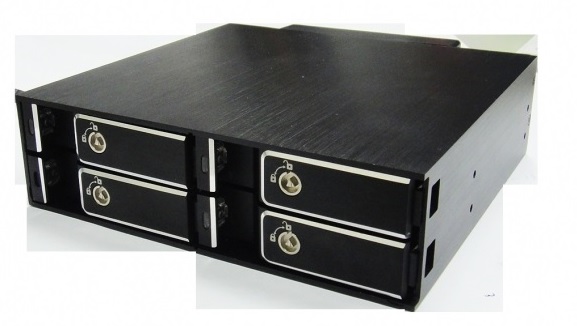 ST-2141 SSEКорзина 1 x 5,25" для 4 x 2,5" HDD с возможностью "горячей" замены и замком, поддержка SATA-I/II/III и SAS-I/II, 2 вентилятора охлаждения