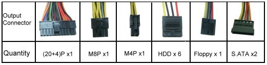 | Выходной разъем | 24 pin ATX |