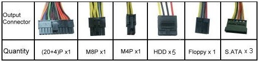 | Выходные напряжения | +5, +3.3, +12, -12, 5Vsb |