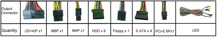 | Выходные напряжения | +5, +3.3, +12, -12, 5Vsb |