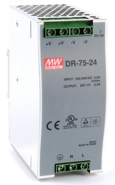 Planet PWR-75-24 Источник питания 75 вт, Uвх.=100-240В АС, Uвых.=24В DC, Iвых.=3.2А, монтаж на DIN-рейку (Mean Well NDR-75-24)