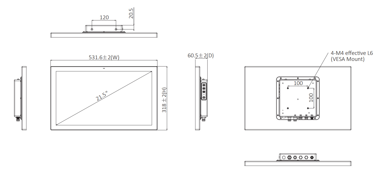 GOT521-13C-WCD Безвентиляторный панельный компьютер 21.5'' с ёмкостным сенсорным экраном (процессор Intel U300E 1.1 ГГц (предустановлен), DDR5 SO-DIMM до 48 Гб, 2x2.5GLAN (М12), 1xGLAN (М12), 1xRS232/422/485 (М12), 2xUSB2.0 (М12), SATA, mSATA, 1xMiniPCI-E, 1xM.2 Key E 2230 slot, 1хM.2 Key M 2280 slot, защита IP66, питание 9...36 В DC (М12), расширенный диапазон температур -20...+50 °C