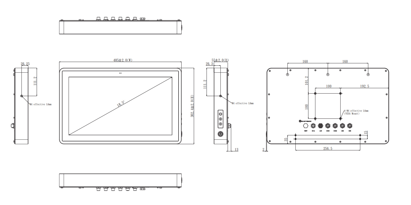 GOT818A-TGL-WCD Безвентиляторный панельный компьютер 18.5'' с ёмкостным сенсорным экраном (процессор Intel Core i5-1145G7E 2.6 ГГц (предустановлен), DDR4 SO-DIMM до 32 Гб, 1x2.5GLAN (М12), 2xRS232/422/485 (М12), 4xUSB2.0 (М12), SATA, отсек 2,5", M.2 Key E 2230 slot, защита IP66, питание 12...24 В DC (М12), расширенный диапазон температур -20...+50 °C