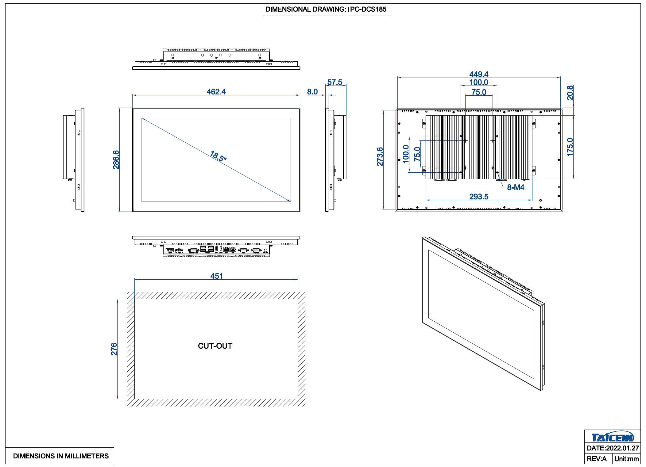 TPC-DRS185A1 Безвентиляторный панельный компьютер 18.5" c резистивным сенсорным экраном 1366x768 (процессор Intel Celeron J3455 1.5ГГц предустановлен, 2xHDMI, 2xGLAN, 3xRS232, 4xUSB3.0, 1xM.2 Key-B slot, 1xM.2 Key-E slot, отсек для накопителя 2,5", защита IP65 по передней панели, питание 12В, адаптер питания)