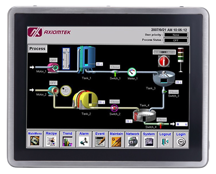 GOT817-834-R-RF-DC Безвентиляторный панельный компьютер 17'' с резистивным сенсорным экраном (процессор Intel Atom E3827 1.75ГГц предустановлен, 1xGigaLAN (M12), 2xRS232/422/485 (M12), 4xUSB2.0 (M12), SATA, CFast, отсек для накопителя 2.5", 2xMini-PCI-E, полная защита IP66/IP69K (NEMA4X), питание 12В...36В, расширенный диапазон температур -20...+55, подготовка для установки 3g или WiFi модуля)