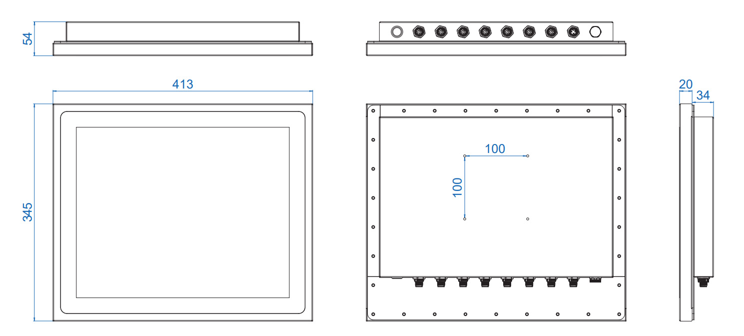 | Опции | Источник питания PWA-120W, PWA-160W-WT, комплект для монтажа в панель Panel-Mount, настольное крепление VESA-Mount |