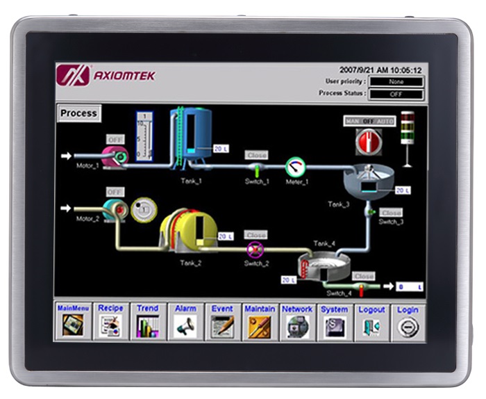 GOT815-834-R-RF-DC Безвентиляторный панельный компьютер 15" с резистивным сенсорным экраном с защитой IP66 со всех сторон, процессор Intel Atom E3827 1,75ГГц предустановлен, GLAN, 2xRS232/422/485, 4xUSB2.0, SATA, CFast, отсек для накопителя 2.5", питание 9В...36В, расширенный диапазон температур -20...+55, подготовка для установки 3g или WiFi модуля)