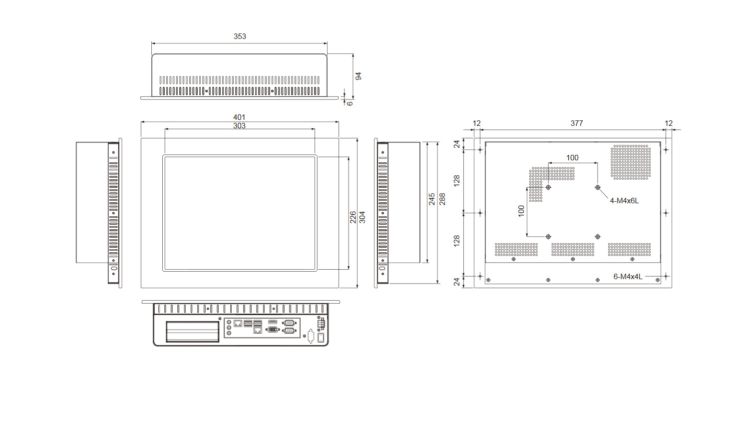 SP150R003S Безвентиляторный панельный компьютер 15" c резистивным сенсорным экраном (процессор Intel Celeron J1900 2ГГц предустановлен, VGA, HDMI, 2xGLAN, RS232 + RS232/422/485, 3xUSB2.0 + 1xUSB3.0, mSATA, 1xMini-PCI-E, отсек для накопителя 2.5", защита IP65 по передней панели, питание 12/19/24В, источник питания 60Вт)
