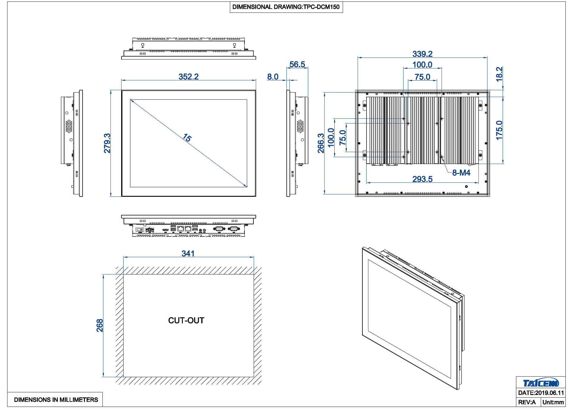TPC-DRM150W3 Безвентиляторный панельный компьютер 15" с резистивным сенсорным экраном 1024x768 (процессор Intel Core i7-8565U 1,8 ГГц предустановлен, 1xHDMI, 2xGLAN, 2xRS232, 2xUSB2.0, 4xUSB3.0, MiniPCI-E, mSATA, защита IP65 по передней панели, питание 12 В, расширенный диапазон температур -20...60)