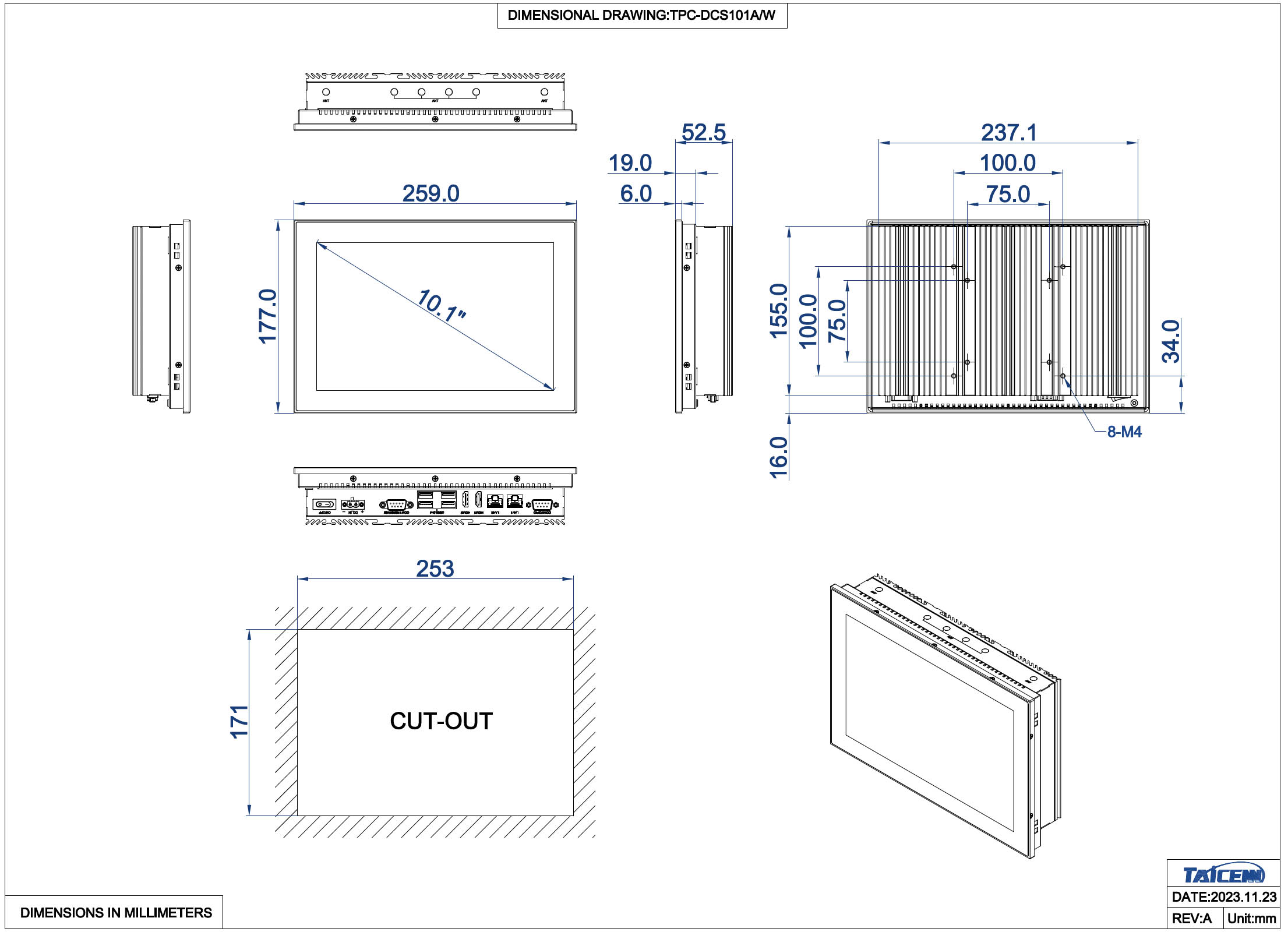 TPC-DRS101A1 Безвентиляторный панельный компьютер 10,1" c резистивным сенсорным экраном 1280x800 (процессор Intel Apollo Lake J3455 1.5 ГГц предустановлен, 2xHDMI, 2xGLAN, 2xRS232, 4xUSB3.0, 1х M.2 Key-B 3042/3052 slot, 1х M.2 2230 Key-E slot, Mini-PCIe, защита IP65 по передней панели, источник питания 12 В, расширенный диапазон температур -20...70 ℃)