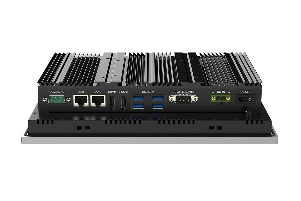 TPC-DRS104A1W Безвентиляторный панельный компьютер 10,4" c резистивным сенсорным экраном 1024x768 (процессор Intel Celeron J3455 1.5ГГц предустановлен, 2xHDMI, 2xGLAN, 2xRS232, 4xUSB3.0, 1xM.2 Key-B slot (SATA SSD, 2242), 1xM.2 Key-E slot , защита IP65 по передней панели, питание 9...36В, расширенный диапазон температур -20...70)