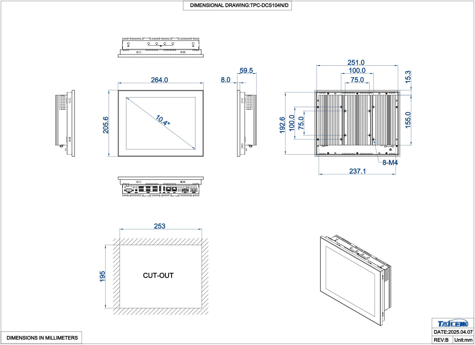 TPC-DRS104N1 Безвентиляторный панельный компьютер 10,4" c резистивным сенсорным экраном 1024x768 (процессор Intel Alder Lake-N N97 3.6 ГГц предустановлен, HDMI, DP++, 2xGLAN, 1xRS232, 2xUSB2.0, 4xUSB3.0, 1хM.2 B-Key 3042/3052 slot; 1хM.2 E-key 2230 slot, Audio, защита IP65 по передней панели, источник питания 12 В, расширенный диапазон температур -20...70 ℃)