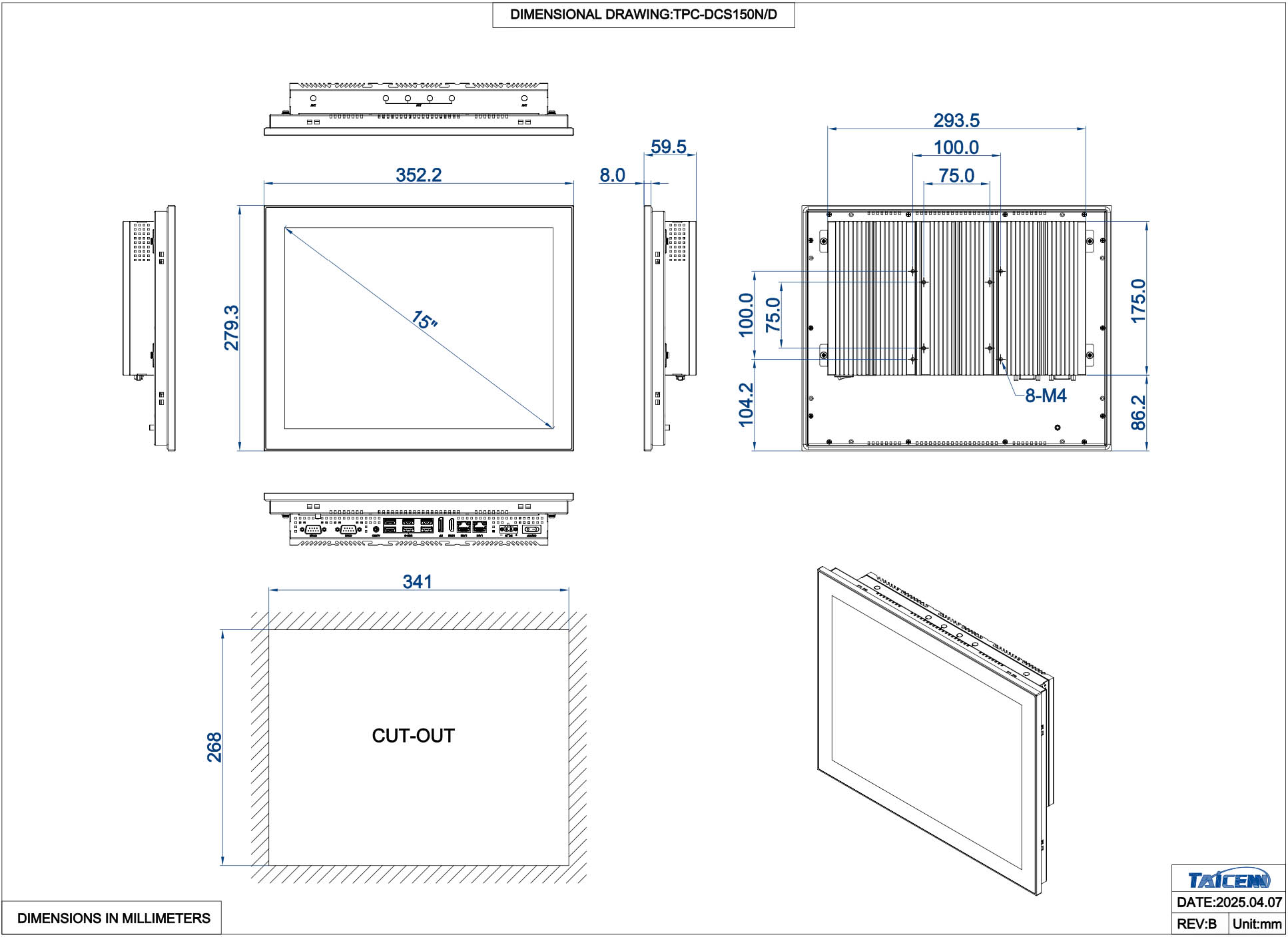 TPC-DRS150N1 Безвентиляторный панельный компьютер 15,0" c резистивным сенсорным экраном 1024x768 (процессор Intel Alder Lake-N N97 3.6 ГГц предустановлен, HDMI, DP++, 2xGLAN, 1xRS232, 2xUSB2.0, 4xUSB3.0, 1хM.2 B-Key 3042/3052 slot; 1хM.2 E-key 2230 slot, Audio, защита IP65 по передней панели, источник питания 12 В, расширенный диапазон температур -20...70 ℃)