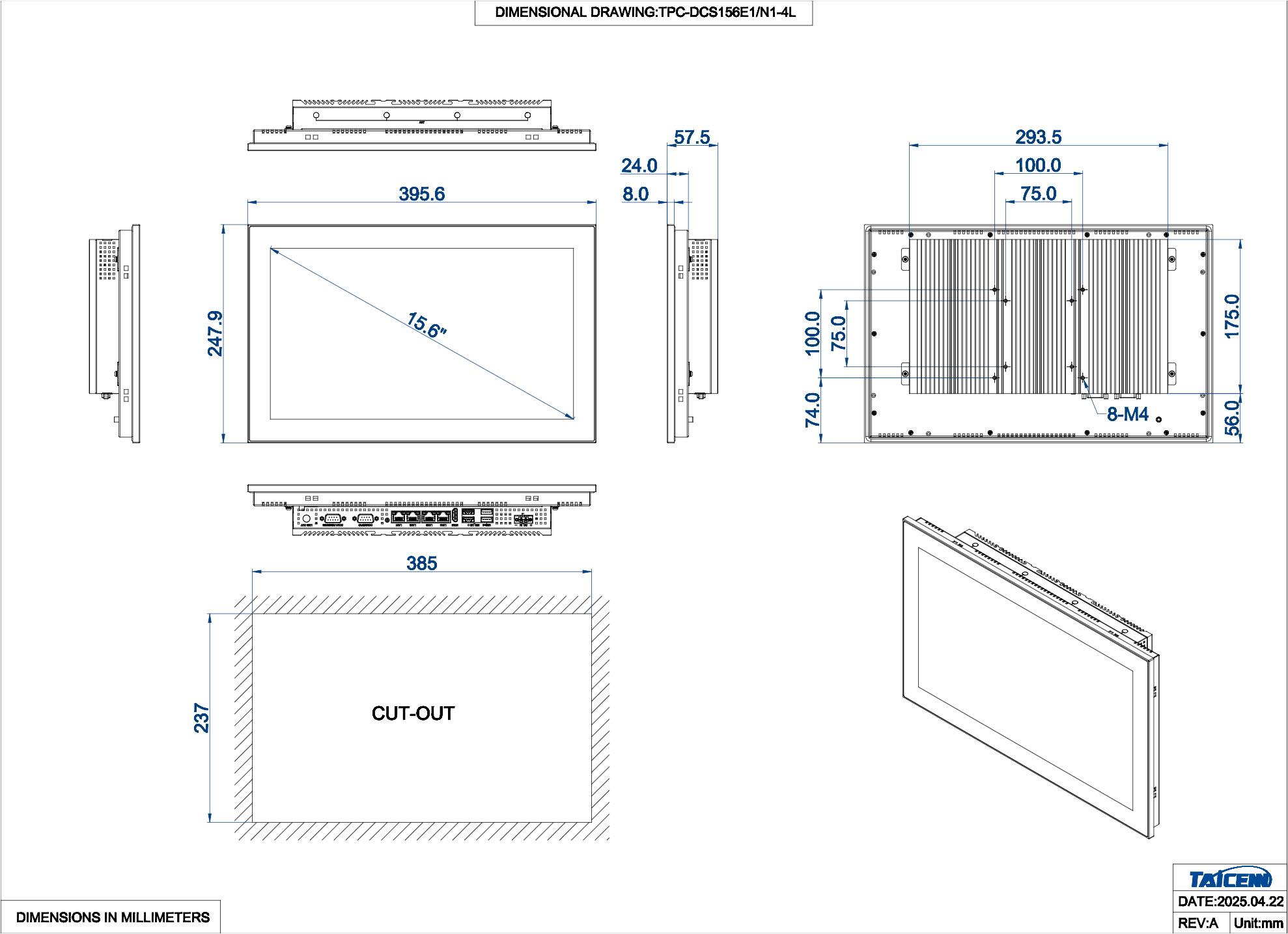 TPC-DRS156HN1-4L Безвентиляторный панельный компьютер 15,6" c резистивным сенсорным экраном 1920x1080 (процессор Intel N97 2ГГц предустановлен, HDMI, 4xGLAN, 1xRS232, 2USB2.0, 2xUSB3.0, 1* M.2 2280 M-Key (SATA) SSD, 1xMini-PCIe slot, Audio, защита IP65 по передней панели, источник питания 12 В, расширенный диапазон температур -20...70 ℃)