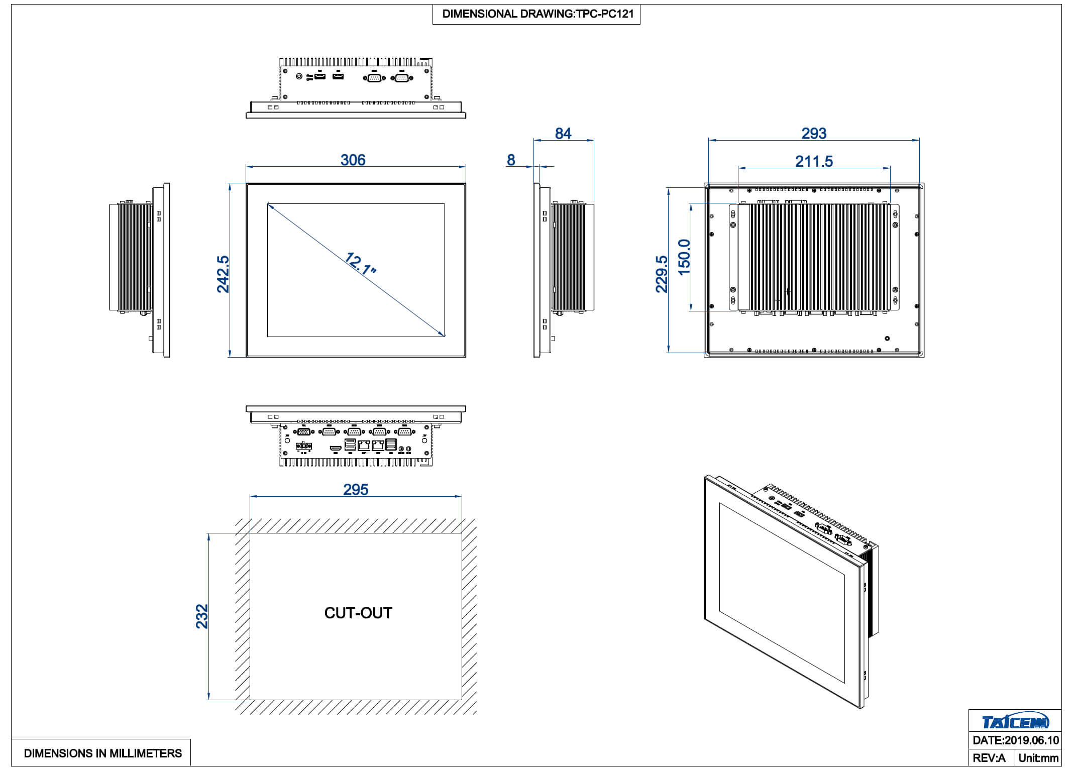 TPC-PC121W1 Безвентиляторный панельный компьютер 12,1" c емкостным сенсорным экраном 1024x768 (процессор Intel Core i3-8145U 2,1 ГГц предустановлен, 1xHDMI, 1xVGA, 2xGLAN, 6xRS232, 4xUSB3.0, 4xUSB2.0, Audio (Mic-in/Line-out), 1xMiniPCI-E, mSATA, защита IP65 по передней панели, питание 12...24 В DC, адаптер питания, расширенный диапазон температур -20...70)