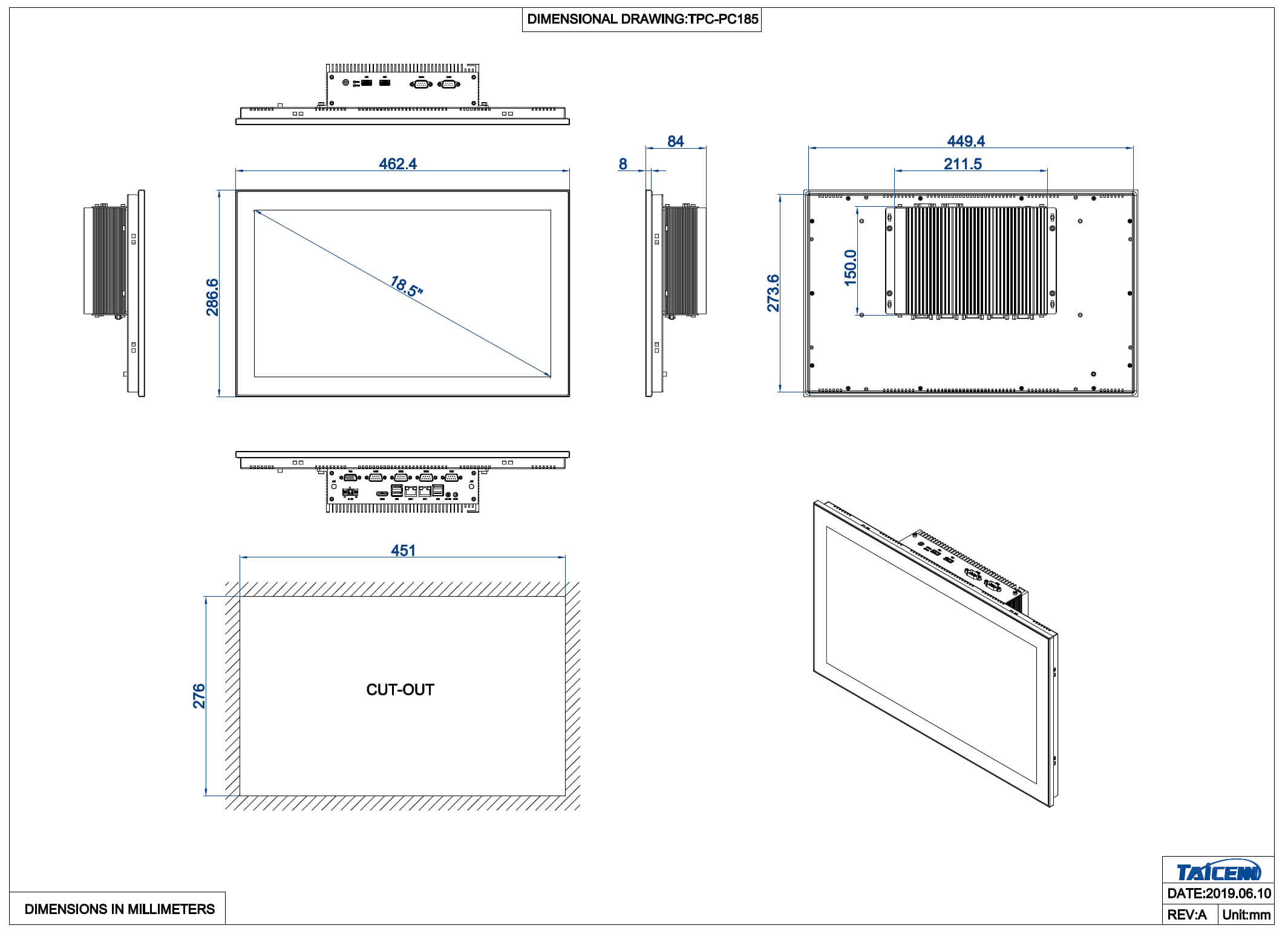 TPC-PC185HW3 Безвентиляторный панельный компьютер 18,5" c емкостным сенсорным экраном 1920x1080 (процессор Intel Core i7-8565U 1,8 ГГц предустановлен, 1xHDMI, 1xVGA, 2xGLAN, 6xRS232, 4xUSB3.0, 4xUSB2.0, Audio (Mic-in/Line-out), 1xMiniPCI-E, mSATA, защита IP65 по передней панели, питание 12...24 В DC, адаптер питания, расширенный диапазон температур -20...70)
