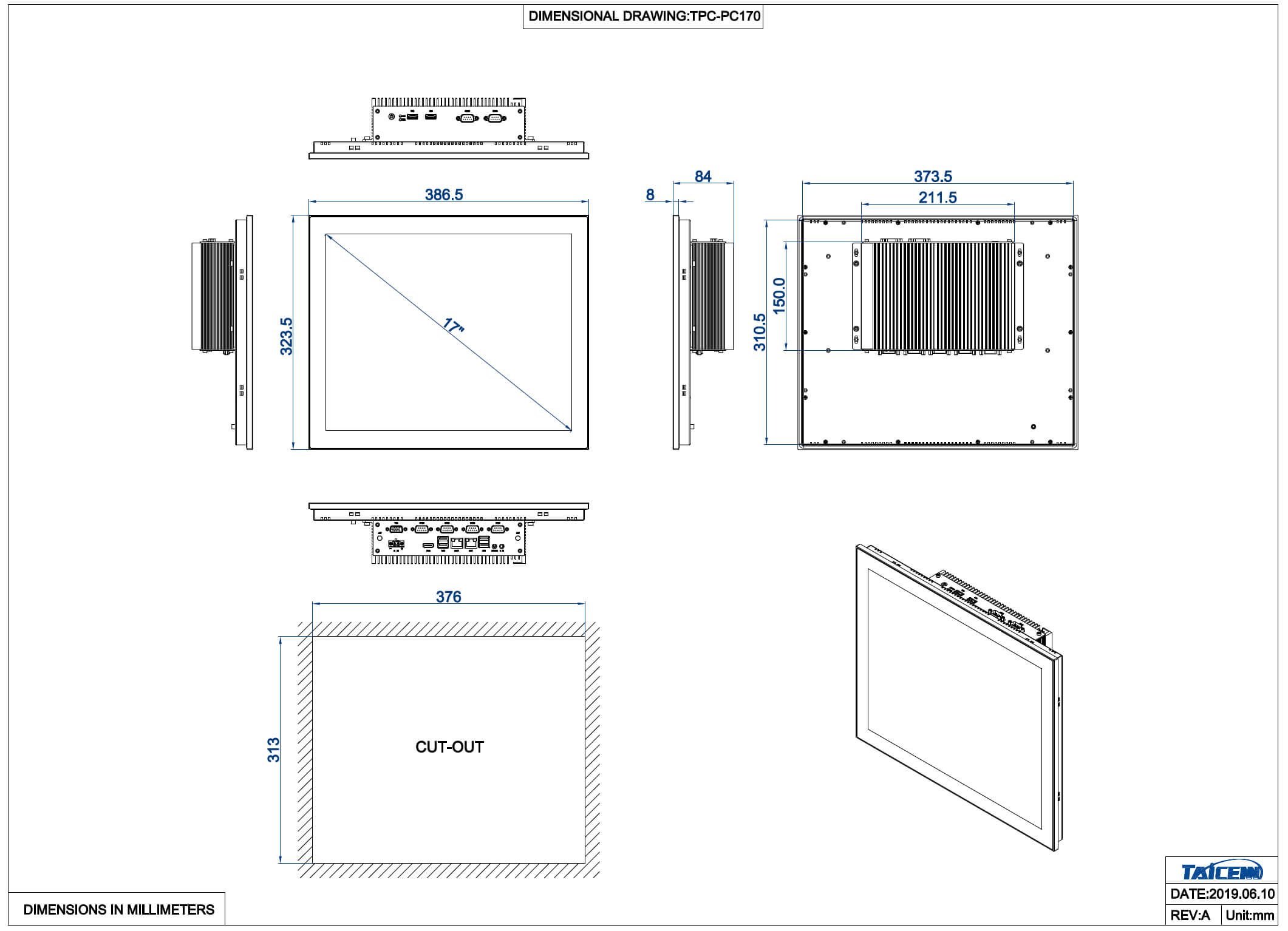 TPC-PR170C1 Безвентиляторный панельный компьютер 17" c резистивным сенсорным экраном 1280x1024 (процессор Intel Baytrail J1900 2.0 ГГц предустановлен, 1xHDMI, 1xVGA, 2xGLAN, 6xRS232, 1xUSB3.0, 4xUSB2.0, Audio (Mic-in/Line-out), 1xMiniPCI-E, mSATA, защита IP65 по передней панели, питание 9...24 В DC, адаптер питания, расширенный диапазон температур -20...70)