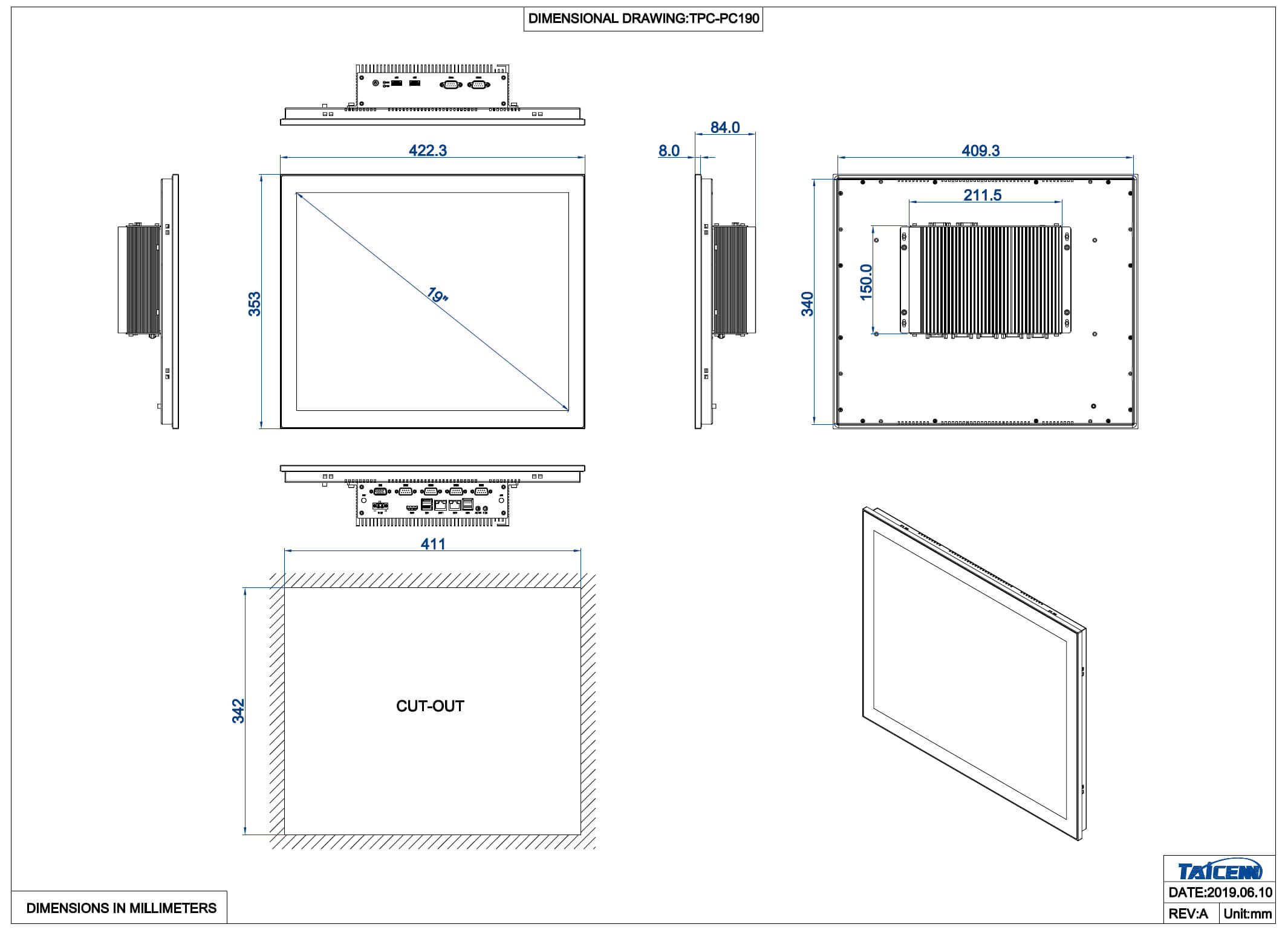 TPC-PR190W3 Безвентиляторный панельный компьютер 19" c резистивным сенсорным экраном 1280x1024 (процессор Intel Core i7-8565U 1,8 ГГц предустановлен, 1xHDMI, 1xVGA, 2xGLAN, 6xRS232, 4xUSB3.0, 4xUSB2.0, Audio (Mic-in/Line-out), 1xMiniPCI-E, mSATA, защита IP65 по передней панели, питание 12...24 В DC, адаптер питания)