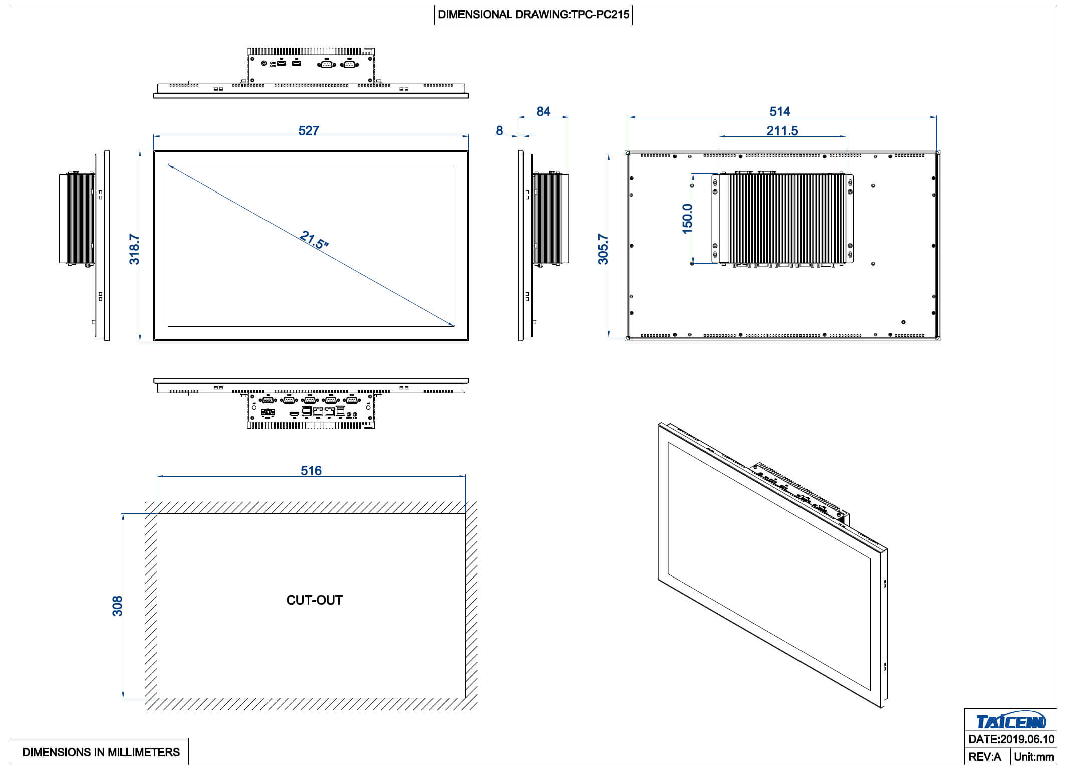 TPC-PR215C1 Безвентиляторный панельный компьютер 21.5" c резистивным сенсорным экраном 1920x1080 (процессор Intel Baytrail J1900 2.0 ГГц предустановлен, 1xHDMI, 1xVGA, 2xGLAN, 6xRS232, 1xUSB3.0, 4xUSB2.0, Audio (Mic-in/Line-out), 1xMiniPCI-E, mSATA, защита IP65 по передней панели, питание 9...24 В DC, адаптер питания)
