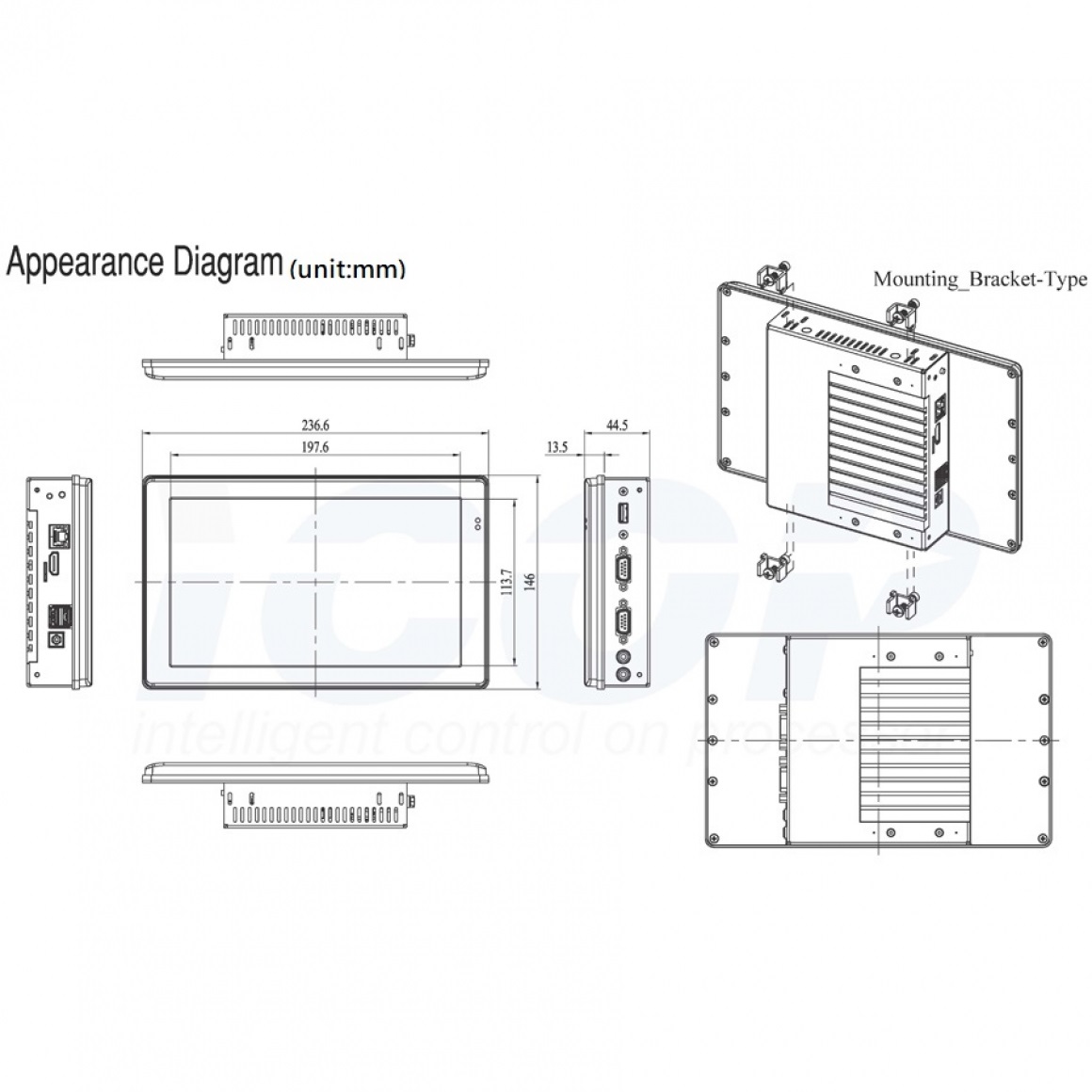 PINT-090T-APL-N4-4G Безвентиляторный панельный компьютер 9" c резистивным сенсорным экраном процессор Intel Pentium N4200 1.1ГГц предустановлен, ОЗУ 4Гб, HDMI, 1xGLAN, 1xRS232 + 1xRS232/422/485, 3xUSB, M.2, MiniPCI-E, SIM, Audio, защита IP65 по передней панели, адаптер питания