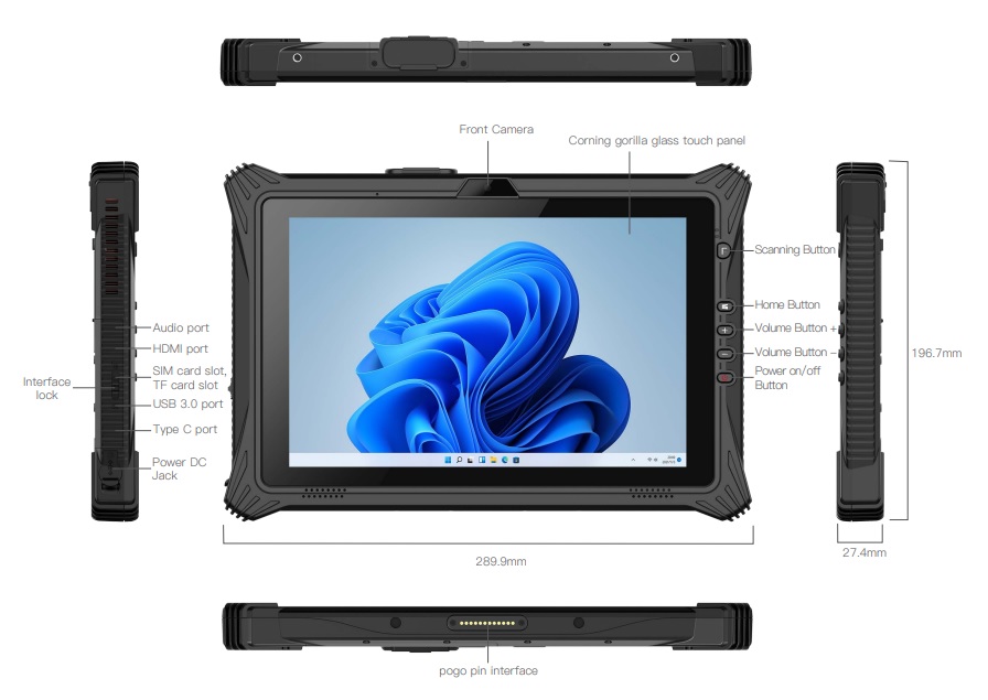 I10J-2 Плантшетная рабочая станция 10.1" со степенью защиты IP65 (1920x1200, процессор Intel Celeron N5105 2ГГц, 16Гб ОЗУ, 128Гб SSD eMMC, Mini HDMI, 4G LTE, GPS, WiFi 802.11 a/b/g/n/ac (2.4G+5G), Bluetooth 5.0, USB 3.0, USB Type-C, Audio, MicroSD slot, SIM Slot, емкостной мультитач, фронтальная камера 5Мп, тыловая камера 8Мп, Windows 11 Home, аккумулятор 5000mAh/7.4V, адаптер питания 19V/3.42A, расширенный диапазон температур -20...+60)
