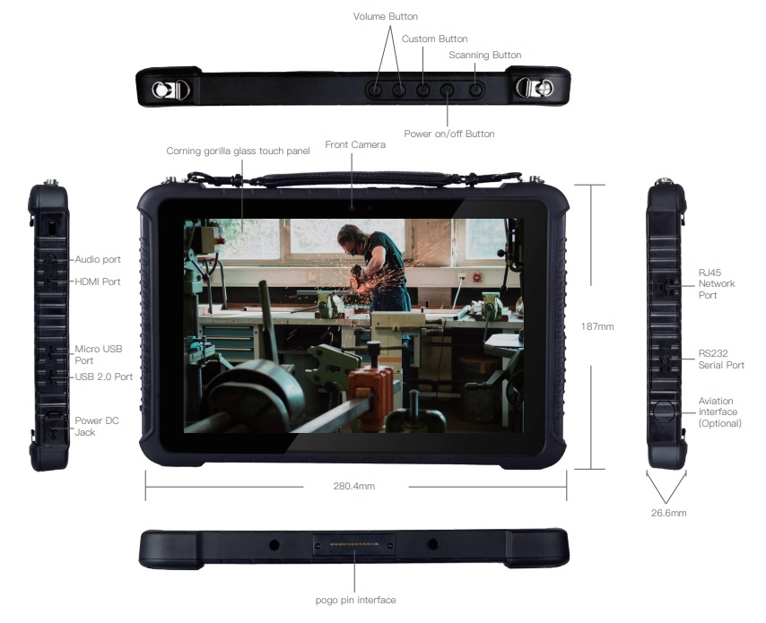 I16H Плантшетная рабочая станция 10.1" со степенью защиты IP65 (1280х800, процессор Intel Atom x5 Z8350 1.44ГГц, 4Гб ОЗУ, 128Гб SSD eMMC, HDMI, 4G LTE, GPS, WiFi 802.11 a/b/g/n/ac (2.4G+5G), Bluetooth 4.2, USB 2.0, Micro USB, Audio, MicroSD slot, SIM Slot, емкостной мультитач, фронтальная камера 2Мп, тыловая камера 5Мп, Windows 10 Home, аккумулятор 10000mAh/3.7V, адаптер питания 5V/3A, расширенный диапазон температур -20...+60)