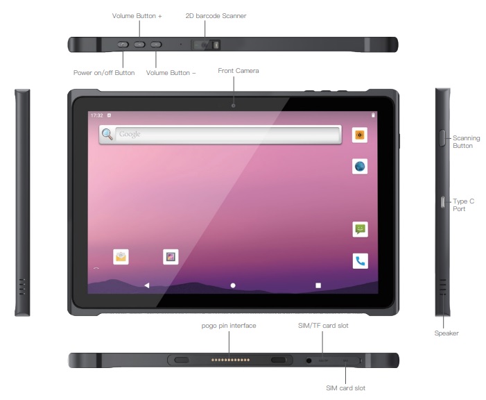 T195-2 Плантшетная рабочая станция 10.1" со степенью защиты IP65 (сканер штрих-кодов, 1920х1200, процессор MTK (Octa-Core), 8Гб ОЗУ, 128Гб SSD eMMC, 5G, GPS, WiFi 802.11 a/b/g/n/ac (2.4G+5G), Bluetooth 5.1, NFC, USB Type-C, Audio, MicroSD slot, 2xSIM Slot, емкостной мультитач, фронтальная камера 5Мп, тыловая камера 13Мп, Android 11, аккумулятор 3.8V/9500mAh, адаптер питания 9V/2A, расширенный диапазон температур -10...+50)