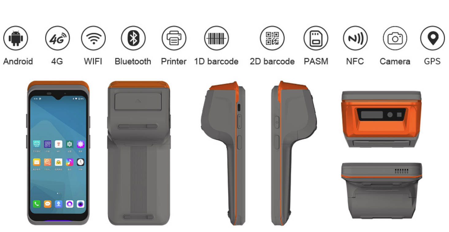 P62 Защищённый КПК 6.217" со степенью защиты IP54 (процессор MTK6762, 2,0 ГГц, 2 Гб ОЗУ, 16 Гб флеш, NanoSIM, USB TYPE-C, 4G, WiFi 2.4G+5.8G, GPS+GLONASS, Bluetooth BT5.0, термопринтер, емкостной сенсорный экран, Audio, тыловая камера 8 Мп, Andriod 10, батарея 7,6 В/2500 мАчас, расширенный диапазон температур -20...55 °C)